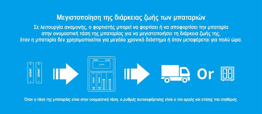 αναζωογονεί και επαναφέρει υπερβολικά αποφορτισμένες μπαταρίες 0V. Τοποθετώντας