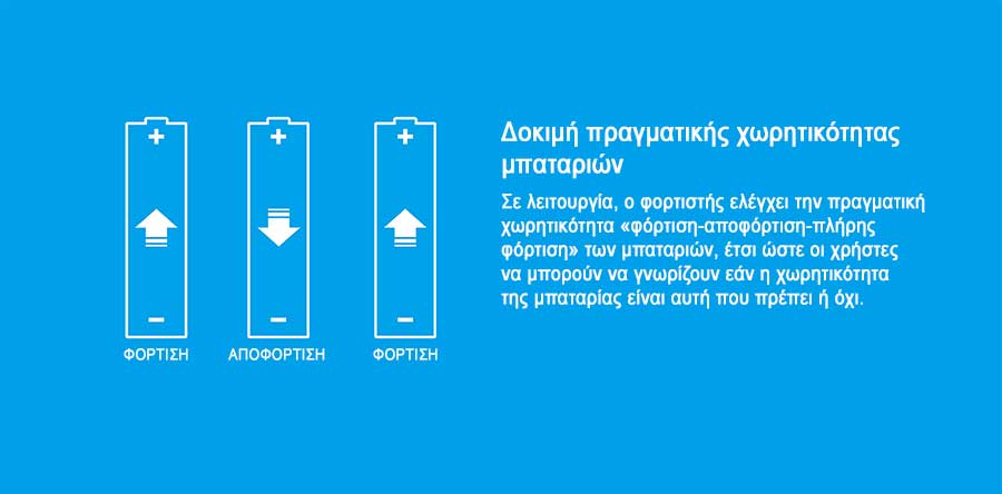 • Δοκιμή πραγματικής χωρητικότητας μπαταριών, μεγιστοποίηση της διάρκειας ζωής
